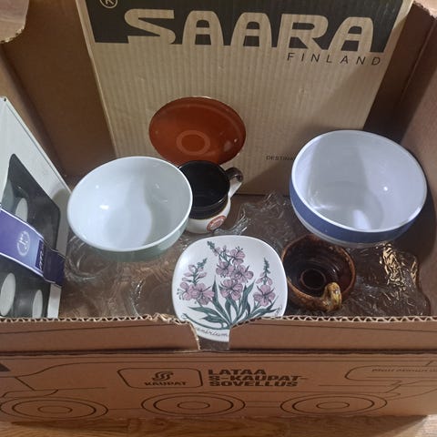 Kaunis laiva-aiheinen astiasto. Hyvässä kunnossa.