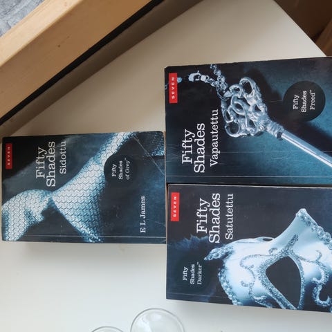 Tästä edullisesti loma lukemista. Fifty shades of the gray sarjan kirjat. Sidottu, satutettu ja vapautettu.