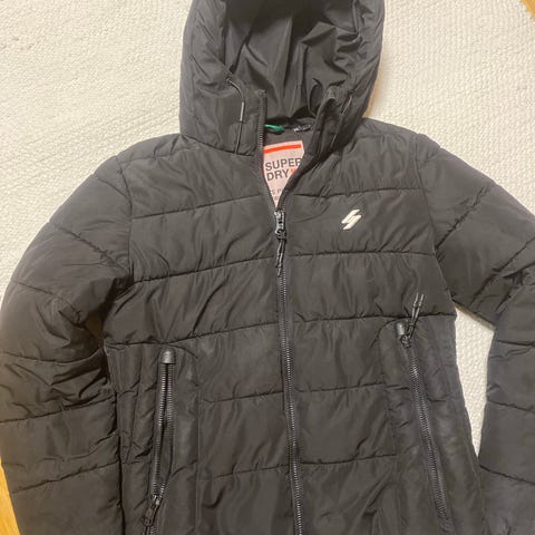 Vain muutaman kerran käytetty laadukas tummansininen Superdry pilottitakki koossa 36. Vastaa mielestäni kokoaan, olen itse 164 cm ja 56kg.