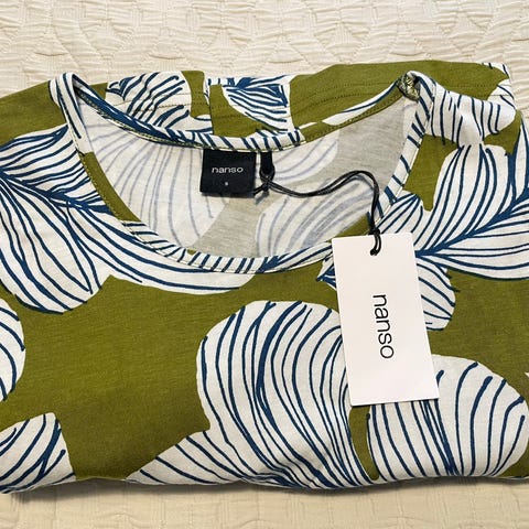 Nanson yöpaita, lyhyt paituli -malli. Siisti ja hyväkuntoinen, 2 kertaa pesty. Mitta kainalosta kainaloon 50 cm, niskasta helmaan 85 cm. Laitathan erillisen viestin, jos teet toridiilitarjouksen, kiitos.