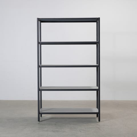 Korkea musta metallihyllykkö italialaiselta Arperilta. Suunnittelijana Lievore Altherr vuonna 2018. Kahden hyllyn setti.