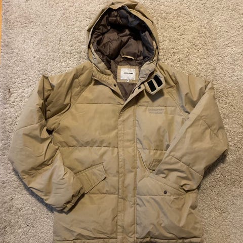 Kerran käytetty hupullinen toppatakki, merkki Sons of Owen. Koko L. Kai-Kai noin 61 cm.