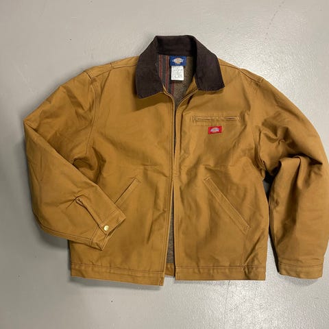 Weekday lämminvuorinen farkkutakki, Carhartt/ Dickies tyylinen. Koko L, mitat (Kainalo-kainalo 67cm / Hihan pituus 70cm / Takin pituus niskasta 79cm)