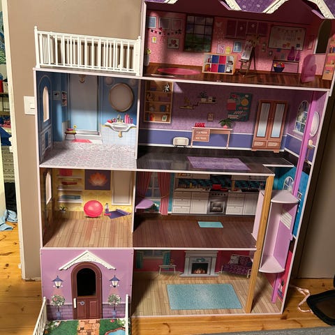 Tästä kiva iso barbietalo. Leikitty mutta vielä seuraavalle tosi hyvä. Korkeus n metrin ja leveys n 80cm.