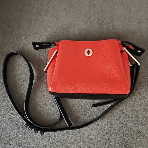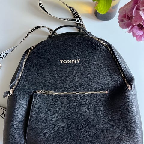 Tommy Hilfiger reppu. Sisällä monta lokeroa, esim. tilaa tietokoneelle. Värit aavistuksen haalistuneet.