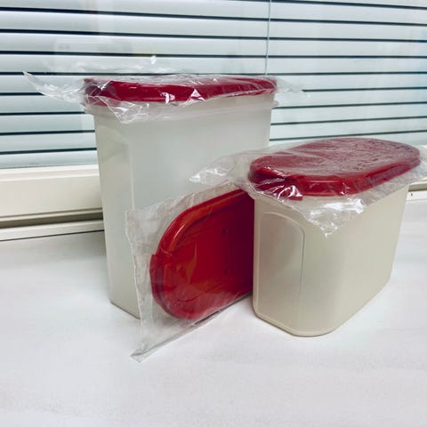 3 tupperware säilytysrasiaa, ihanan jouluiset purkit vaikka lahjaksi. Käyttämättömät. Tiiviit kannet.