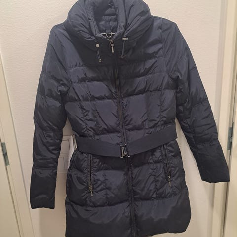 Lämmin talvitakki keinokarvalla. Vyötäröllä on kiristysnyörit