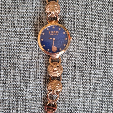 Versus Versacen valkoinen nahkainen rannekello + kultaiset yksityiskohdat.