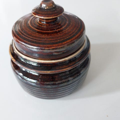 Valmistettu: 1950-1960-luku Leima: pikkukruunuleima Kunto: erinomainem, paitsi reunakultaus kulunut.