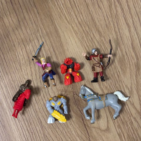 Näillä on jonkin verran leikitty, joten jotain pieniä jälkiä voi löytyä, mutta yleisilme on siisti. Ratsastajat ja ratsut saa toisistaan erilleen.