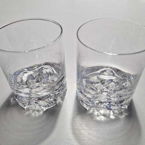 Erikoiset Tapio Wirkkalan aikoinaan suunnittelemat lasit. Gaissa laseissa on jäämäinen erikoinen pohja.