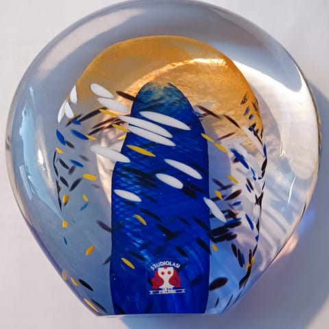 Terho Välimäki taidelasi pallo/paperipaino.