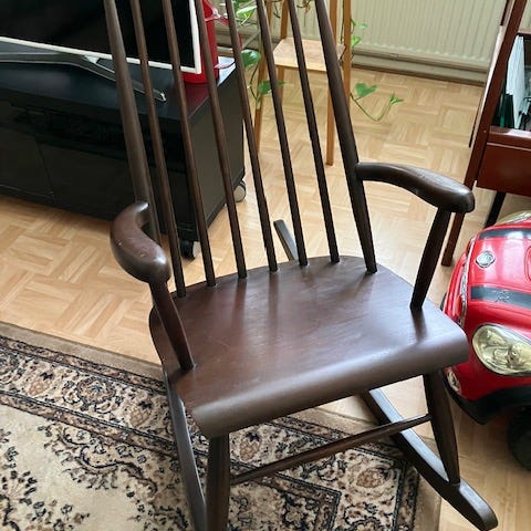 Myydään tarpeettomana mukava keinutuoli. Maalipinta hieman kulunut. Mittoja saa kysymällä.
