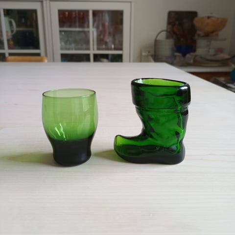 5 kpl Kumelan 70- luvun Lapikas snapslasit,korkeus 7 cm.Ruskeassa lapikkaassa lasimassa virhe,näkyy kuvassa,ei rikkoutuma 7€ / kpl + postitus