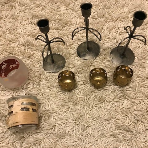 3 kpl isompia, kahdessa tarra jäljellä. koko n. 6,5x5cm tuikkukippoja ja 4 kpl mini n. 3x2,5cm kynttilänjalkoja. kunto hyvä. vanhoja ovat ja niitä on pesty ja pyöritelty vuosien saatossa, Hinta kaikille 7:lle