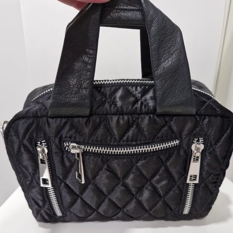 Kiiltonahkainen, lev,48,cm,kork,32 cm,pohja,18,cm,kummallakin sivulla 2 vetoketju taskua ,sisällä 3 taskua joista yksi vetoketjulla nouto tai postitus matkahuollon tai postin kautta ei Toridiilinä