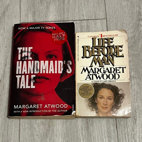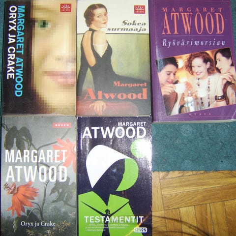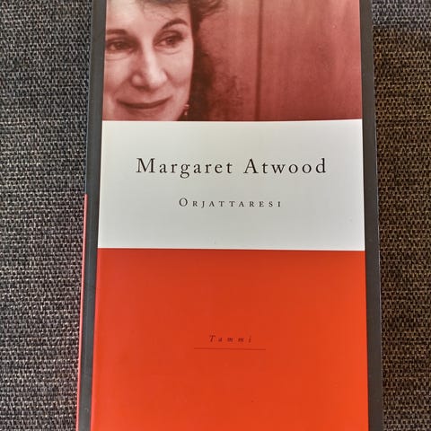 "The Handmaid´s Talen" kirjoittajan kovakantinen romaani kansipapereilla.