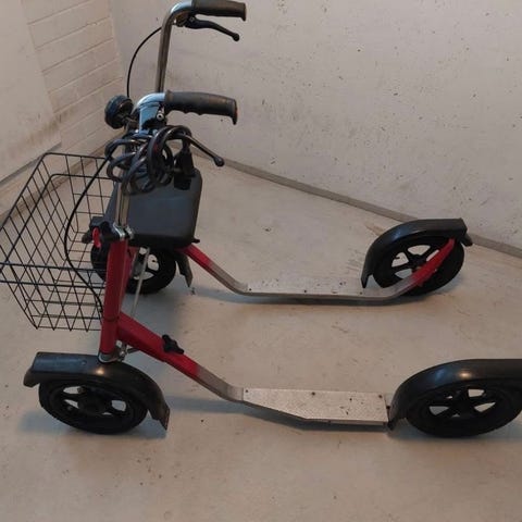 Esla kävely kelkka. Korkeus säädettävissä. Huollettu ja kunnossa. Lähetys purettuna.