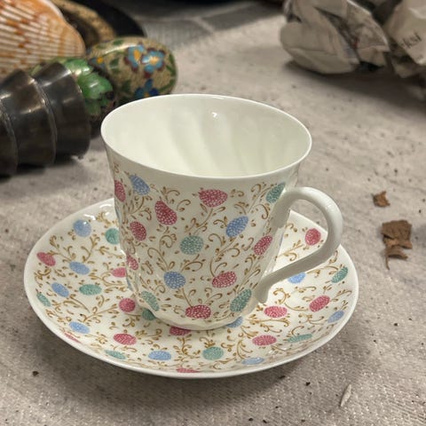 Erittäin hyvässä kunnossa ja hieno Lomonosov kahvikuppi setti ( kuppi,asetti ja kakkulautanen). Hinta yhteensä/ setti/trio 15 euroa. Ehjä. Saatavilla ainakin 3 settia jos joku haluaa enemmän.