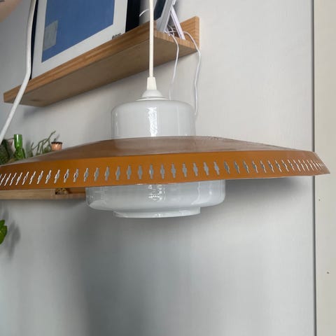 Myydään toimiva Ornon kattovalaisin. Halk.26cm. Ollut meillä vaatehuoneessa käytössä. Kupu muovia ja pohja metallinen.
