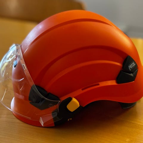 Käyttämätön Petzl säädettävä suojakypärä kuulosuojaimilla.