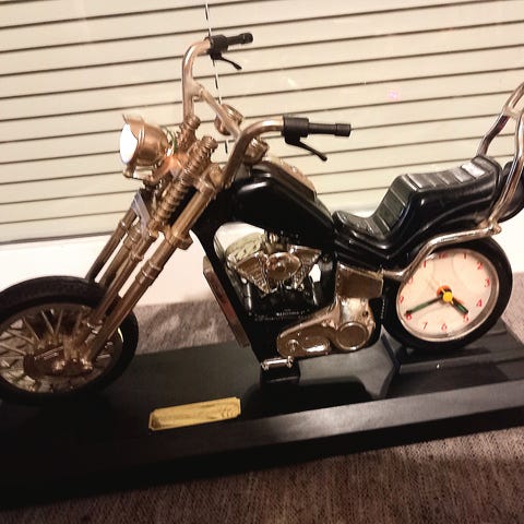 Mootoripyörä taskukellolla ja surinasussutelineellä