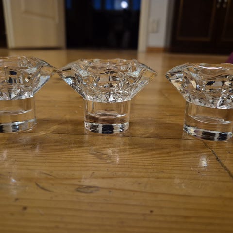 Arabian valmistamat pienet Tähti-kynttilänjalat 1970-1980-luvuilta, korkeus 5cm, halkaisija 6.5cm.