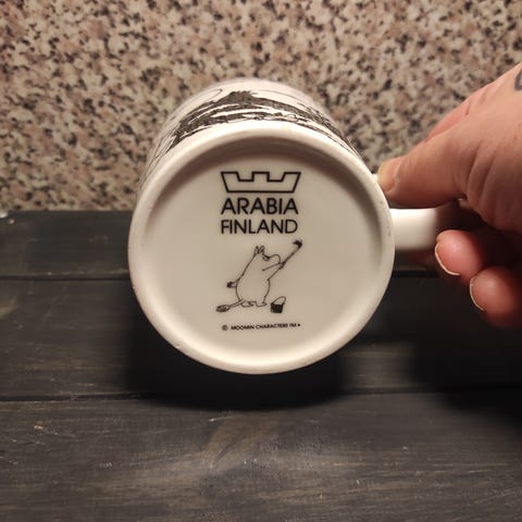 Ehyt Muumimuki "Seikkailu" tarpeettomana keittiöhyllyn perältä pois kuljeksimasta.