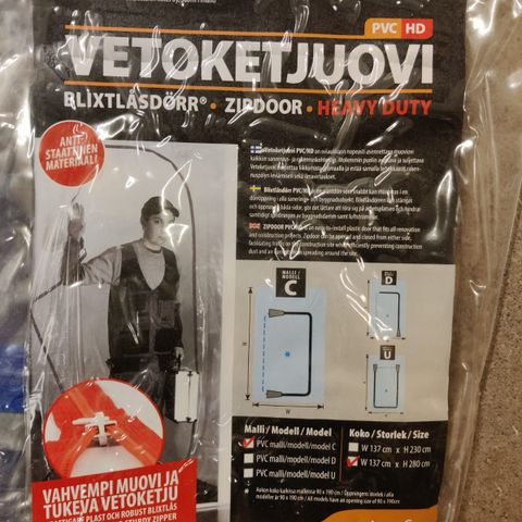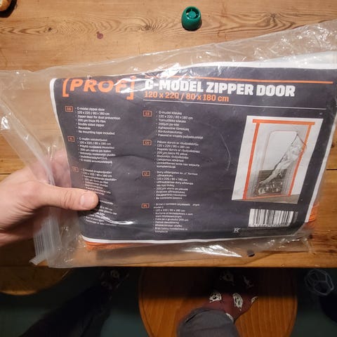 Tämä on hengittävä kuitukankaasta valmistettu ovi, eli päästää jonkin verran ilmaa läpi, mutta estää pölyn leviämisen.