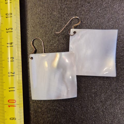Myydään kauniit helmiäiskorvakorut, joiden pituus n. 6 cm. Korvakoruissa on vuorotellen turkoosin ja vihreän sävyisiä helmiä vuorotellen.