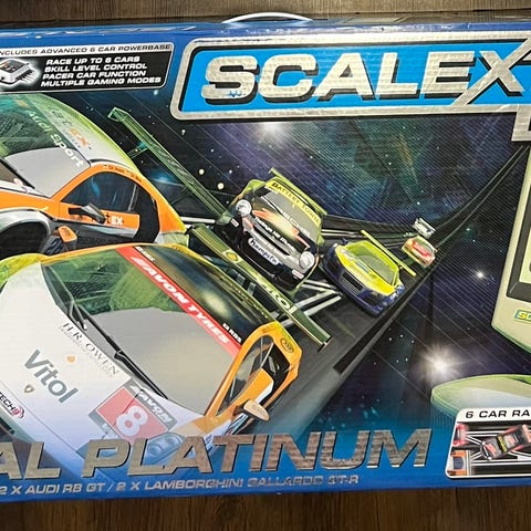 Laatikollinen autoradan osia, kaksi autoa sekä ohjaimet. Radan palasia noin 30 kpl. Autoissa kosketushäiriö, välillä ottavat singaalia ja välillä ei, itse en osaa korjata.