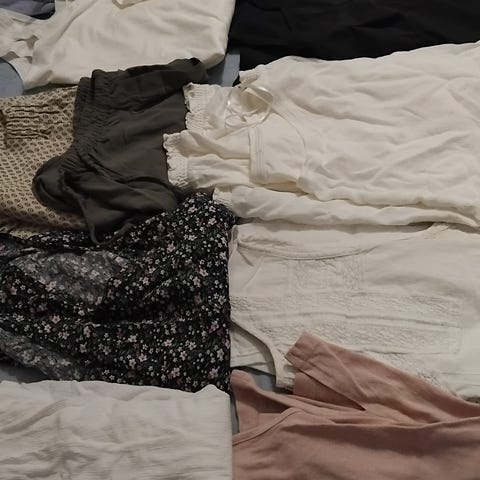 Kuvanmukaisia, käyttökelpoisia naisten vaatteita; lyhyt- ja pitkähihaisia ja hihattomia paitoja/puseroita. Kaikki yhteensä 10 euroa. Nouto tai postitus; myös ToriDiili -lähetys käy.
