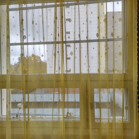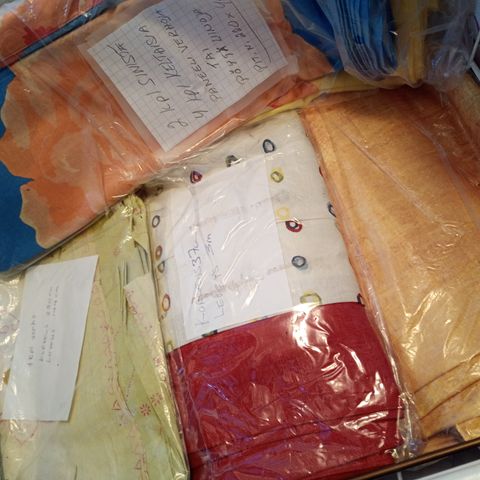 Myydään verhot/ verhokangasta. Sivureunoja ei ole ommeltu. Kankaan pituus 2,26cm ja leveys 1,35cm.