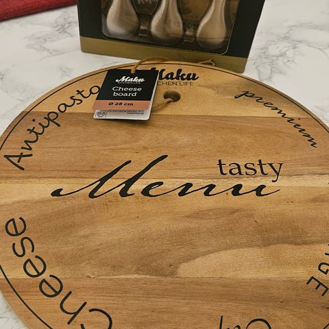 Lahjasetti Maku tarjoilulauta ja neljä nimikylttiä keraaminen