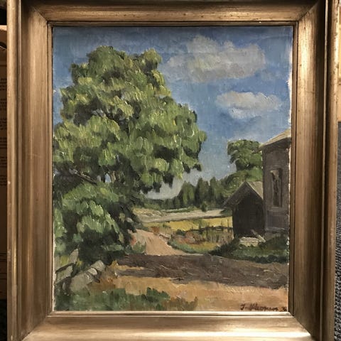 Sulo Iivosen (1895-1962) öljyvärityö Rantapuistosta Vaasa 1940-luvulta. Työn korkeus on 45 cm ja leveys 55 cm. Kehys 56 X 65 cm.