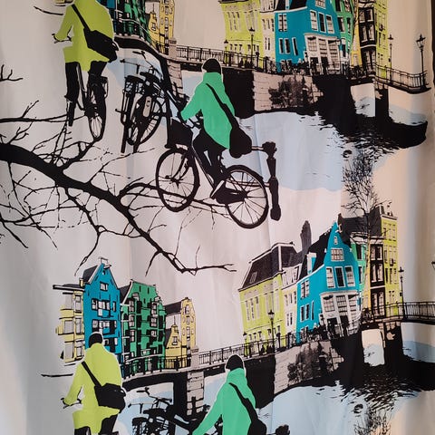 Riina Kuikan Merellä suihkuverho 180cmx200cm. 100% polyesteri. Pesty valmiiksi.
