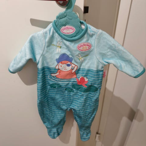 Potkupuku on väriltään tummansininen ja siinä on punaiset resorit. Haalarissa on erilaisia kuvioita, kuten nalleja, eri eläimiä kuten norsu sekä erilaisia kuvioita.