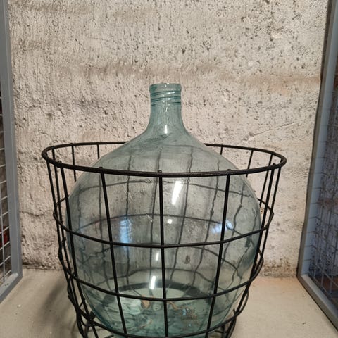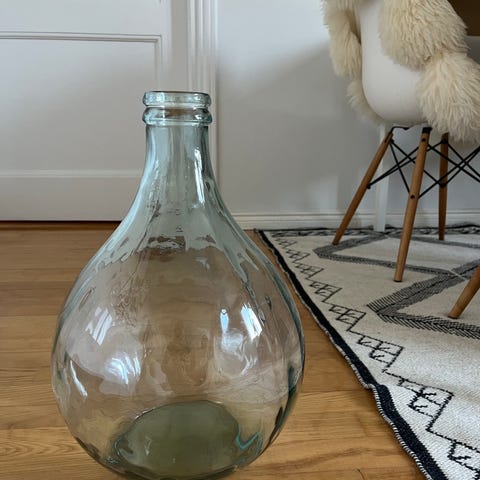 N. 45 cm korkea lasipullo, kirkasta lasia.