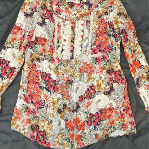Kukkakuvioinen Lola & Lizan naisten paita. Paita on hyvässä kunnossa ja se on ohutta, hyvin laskeutuvaa kangasta. Napit edessä.