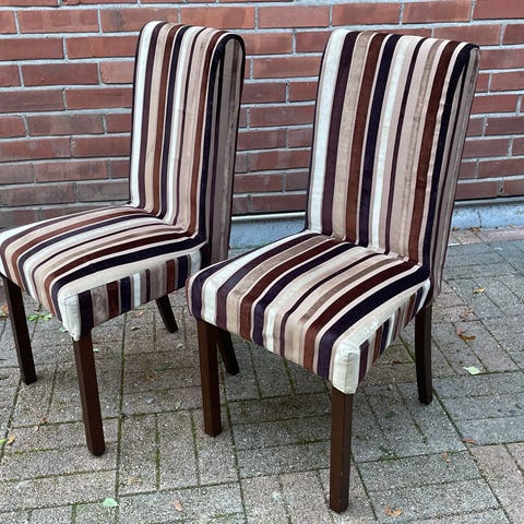 Valkoiset siistit mutta jotain elämisen jälkiä.istuinosat keinonahkaa ja osassa reunoista hapertunut.. puujalat