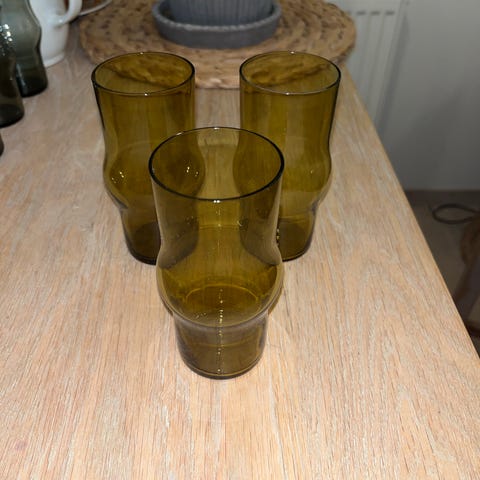 3 kpl Nuutajärven lasin savunharmaita, alkuperäisiä TRUMPETTI-mehulaseja. Upeaa, ohutta lasia. Kaj Franckin 1950-luvulla suunnittelema. Korkeus 15 cm. Täysin ehjät. Hinta à 18 tai kaikki 3 yhteensä 50 euroa. Nouto Helsingin Töölöstä tai Kampin Sähkötalosta. MMM.