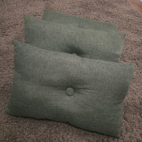 Kaksi koristetyynyä päällisineen. Koko 40*40cm. Toisessa hieman pienempi sisätyyny. Hinta yht. 5e.