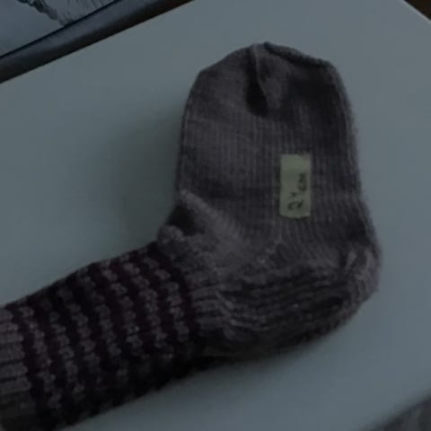 Väri on beige, varressa lisäksi kelta-vihreää kirjolankaa.