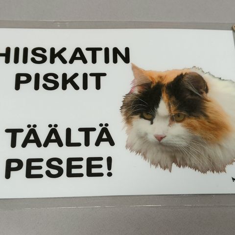 Kissa toivottaa tervetulleeksi. 25*26 cm.