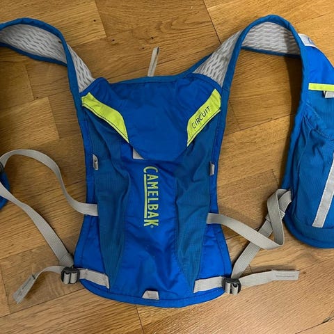 Täysin ehjä pieni Camelback Aurora -reppu. Juomasäiliö ei ole tallessa, mutta sellaisen saa halutessaan ostettua. Alkuperäinen säiliö oli 2.1 -litrainen.