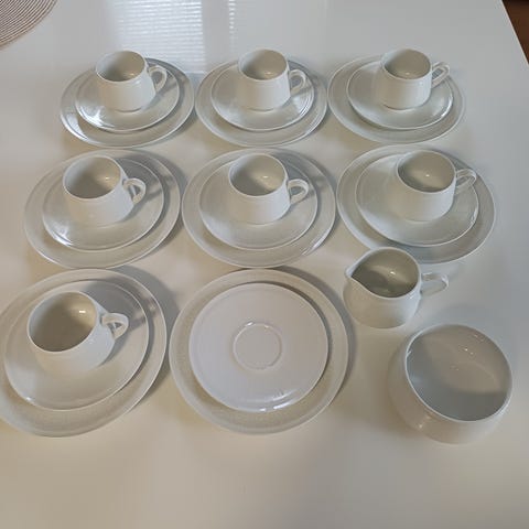 Lisäksi mukaan tulee kaupan päälle 1 kuppi, jonka korva on katkennut sekä sokerikko, joka on liimattu.