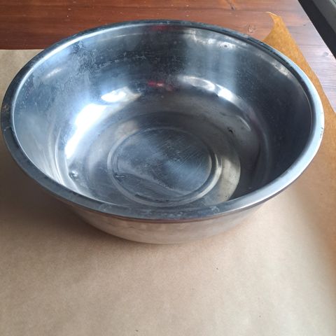 Ruostumatonta terästä. Tilavuus n 6L. Halkaisija 25cm. Korkeus n 8cm. Ohutta peltiä, kevyt. Postitus tai nouto Hyrylä, Mäntsälä. Yksityinen kuolinpesä myy
