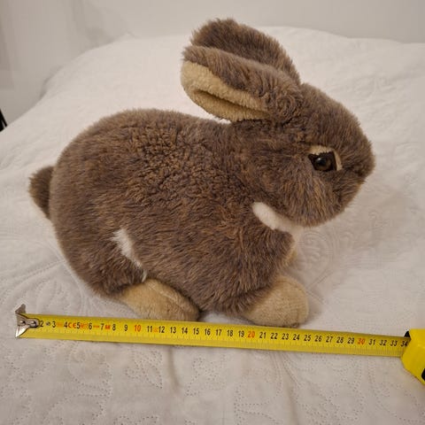 Hauska värikäs pupu. Hyväkuntoinen ikäisekseen. Juuri pesty! Korkeus 40cm korvien kanssa.