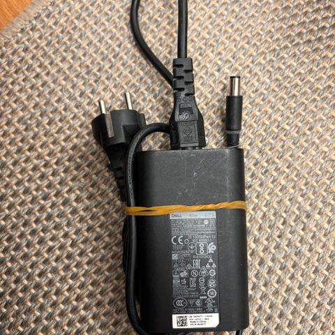 Täysin toimiva ja ehjä Dell 65 W läppärin laturi USB-C päällä.