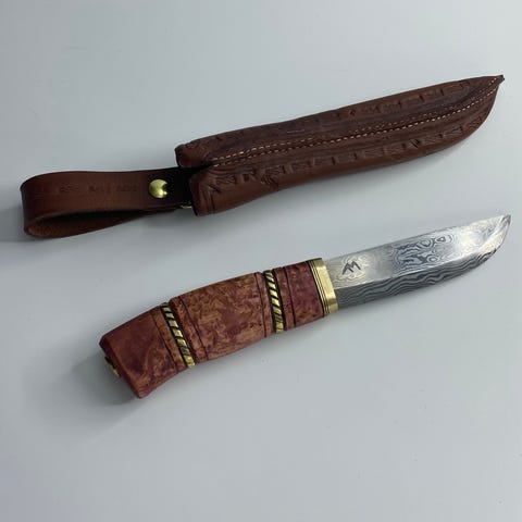 Damaskus puukko terä 120mm.vahva nahka tuppi